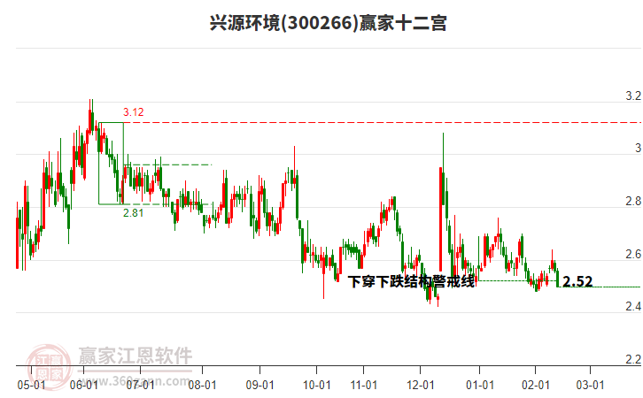興源環(huán)境在高點(diǎn)3.08后,回調(diào)了0.51元,受贏家十二宮下跌結(jié)構(gòu)警戒線支撐