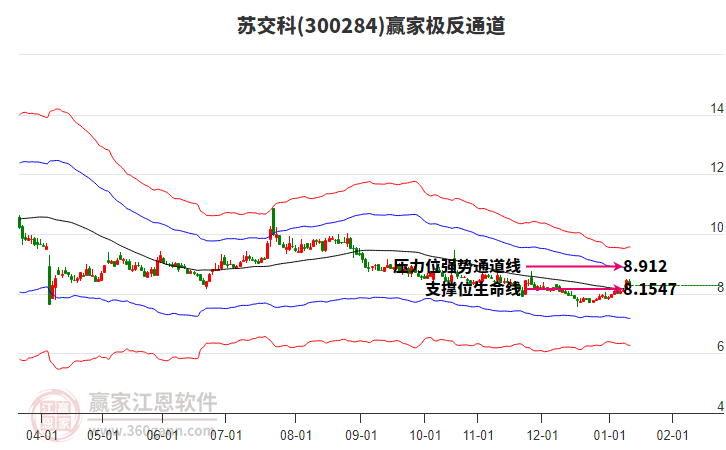 依據(jù)贏家江恩系統(tǒng)趨勢(shì)工具極反通道分析判斷蘇交科300284運(yùn)行在生命線以下弱勢(shì)區(qū)域,根據(jù)規(guī)則該股短線輕倉參與,股價(jià)跌至弱勢(shì)外軌線后波段再結(jié)合其它工具信號(hào)建倉。應(yīng)用口訣是:生命線上強(qiáng)勢(shì)走,生命線下難抬頭;紅黃兩條外軌線,壓力支撐顯勢(shì)頭。