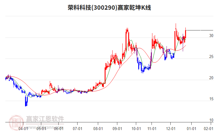 目前榮科科技最高價33.33上穿了贏家極反通道工具藍色外軌線,受到藍色外軌線強力壓制,最終收盤停留在在藍色外軌線與生命線上方的強勢通道區(qū)域。榮科科技近10個交易日漲幅17.81%。