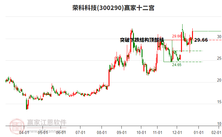 300290榮科科技根據(jù)贏家江恩極反通道趨勢工具展示,上方壓力位34.2574,下方支撐位27.4029。300290榮科科技處于贏家江恩多頭次主線形態(tài),12月5日發(fā)出江恩筑底信號后,經(jīng)過24日,今日