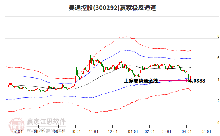 300292吳通控股根據(jù)贏家江恩極反通道趨勢工具展示,上方壓力位4.6496,下方支撐位3.9745。300292吳通控股處于贏家江恩空頭中期反彈形態(tài),1月5日發(fā)出江恩筑底信號后,經(jīng)過25日,今日形成