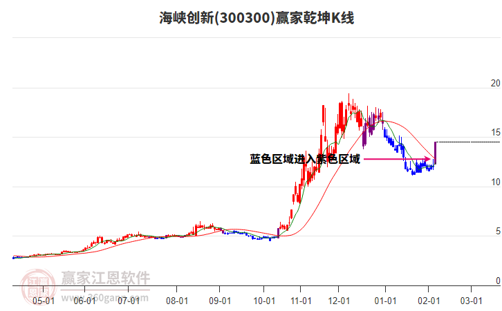 海峽創(chuàng)新今日漲停,進入乾坤K線紫色多空爭奪期