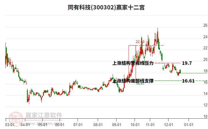 同有科技處于贏家江恩多頭主線形態(tài),11月19日發(fā)出江恩筑頂信號后,經(jīng)過47日,今日再次發(fā)出江恩底分型并發(fā)出江恩筑底信號,中長期多頭趨勢依舊保持。同有科技根據(jù)贏家江恩極反通道趨勢工具展示,上方壓力位20