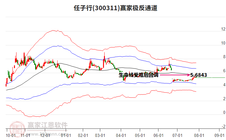 依據(jù)贏家江恩系統(tǒng)趨勢(shì)工具極反通道分析判斷任子行300311運(yùn)行在生命線以下弱勢(shì)區(qū)域,根據(jù)規(guī)則該股短線輕倉參與,股價(jià)跌至弱勢(shì)外軌線后波段再結(jié)合其它工具信號(hào)建倉。應(yīng)用口訣是:生命線上強(qiáng)勢(shì)走,生命線下難抬頭;紅黃兩條外軌線,壓力支撐顯勢(shì)頭。
