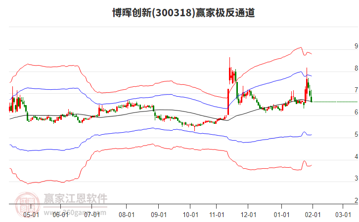 1月27日300318博暉創(chuàng)新最高價8.17挑戰(zhàn)了贏家極反通道工具藍色外軌線,受到藍色外軌線強力壓制,最終收盤停留在在藍色外軌線與生命線上方的強勢通道區(qū)域。300318博暉創(chuàng)新近10個交易日漲幅11.