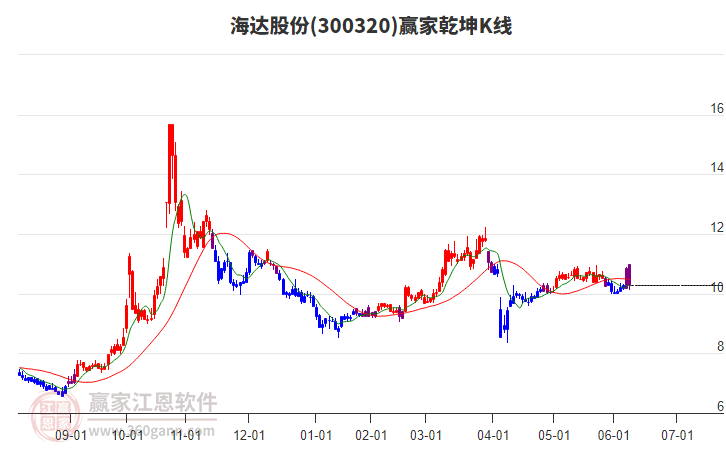 海達股份最高價挑戰(zhàn)藍色外軌線 小幅上漲4.89%