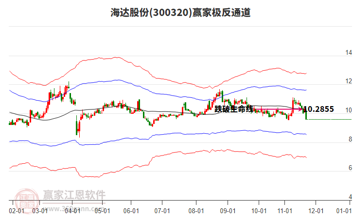 依據(jù)贏家江恩系統(tǒng)趨勢工具極反通道分析判斷海達股份300320運行在生命線以下弱勢區(qū)域,根據(jù)規(guī)則該股短線輕倉參與,股價跌至弱勢外軌線后波段再結(jié)合其它工具信號建倉。應(yīng)用口訣是:生命線上強勢走,生命線下難抬頭;紅黃兩條外軌線,壓力支撐顯勢頭。