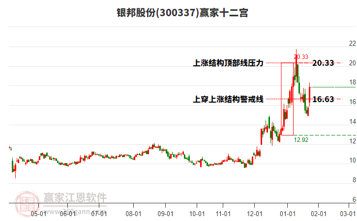 2月13日股價(jià)處在2026年1月8日形成的上漲結(jié)構(gòu)底部線與警戒線之間,今日股價(jià)微跌1.17%,目前處于底部線上方。依據(jù)贏家十二宮多空能量守恒規(guī)則,上漲結(jié)構(gòu)底部線位置是多空能量轉(zhuǎn)換的一個(gè)關(guān)鍵位置。如底部線12.92支撐不破,由多方能量主導(dǎo)上攻,在警戒線16.63尋找多空能量平衡。如跌破底部線,空方動(dòng)能占據(jù)主導(dǎo),打開(kāi)新的下跌空間。