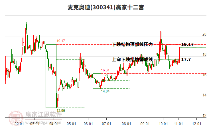 麥克奧迪處于贏家江恩空頭中期反彈形態(tài),11月19日發(fā)出江恩筑頂信號后,經過33日,今日再次發(fā)出江恩底分型并發(fā)出江恩筑底信號,中期多頭趨勢延續(xù),但長期處于下跌中。麥克奧迪根據贏家江恩極反通道趨勢工具展示