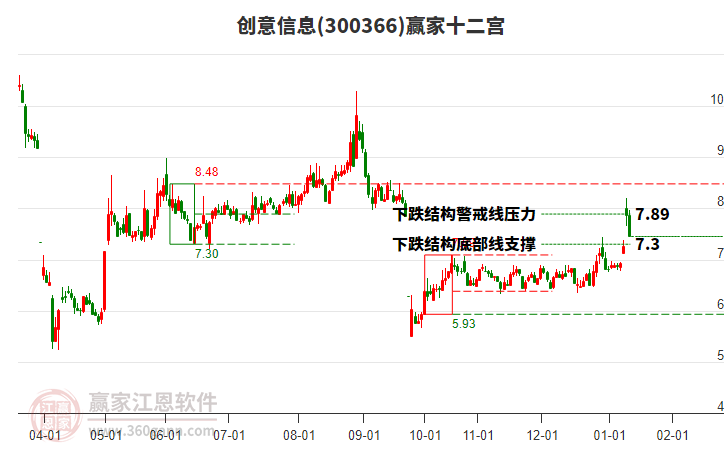 創(chuàng)意信息根據(jù)贏家江恩極反通道趨勢(shì)工具展示,上方壓力位7.5039,下方支撐位6.6671。創(chuàng)意信息處于贏家江恩空頭中期反彈形態(tài),今日雖重心下移,但短期多頭趨勢(shì)未改變,12月22日發(fā)出中期江恩筑頂信號(hào)后