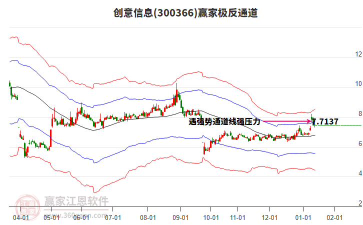 創(chuàng)意信息處于贏家江恩多頭次主線形態(tài),12月25日發(fā)出江恩筑底信號(hào)后,經(jīng)過(guò)34日,今日形成短期筑頂信號(hào),短期多頭趨勢(shì)已被破壞,中期雖然處于回調(diào)中,但長(zhǎng)期多頭趨勢(shì)延續(xù)。創(chuàng)意信息根據(jù)贏家江恩極反通道趨勢(shì)工具