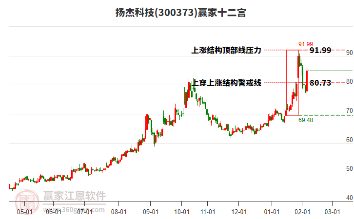 揚(yáng)杰科技形成多頭吞噬組合形態(tài),上穿贏家十二宮上漲結(jié)構(gòu)警戒線