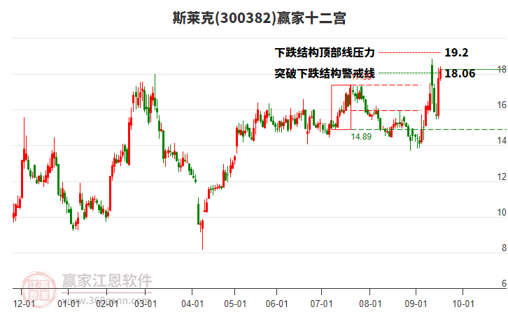 300382斯萊克近期高點(diǎn)16.8持續(xù)下跌,漲幅回落19.4%,近期處于上漲趨勢