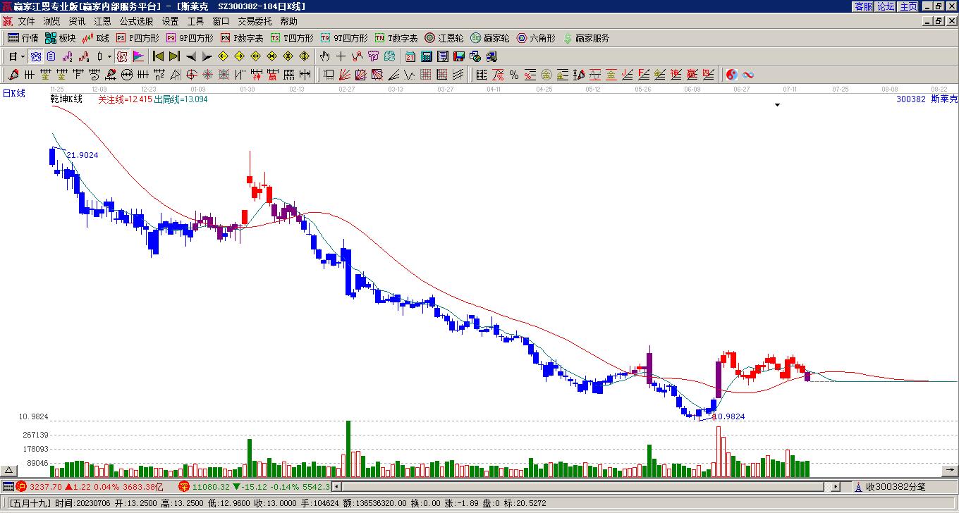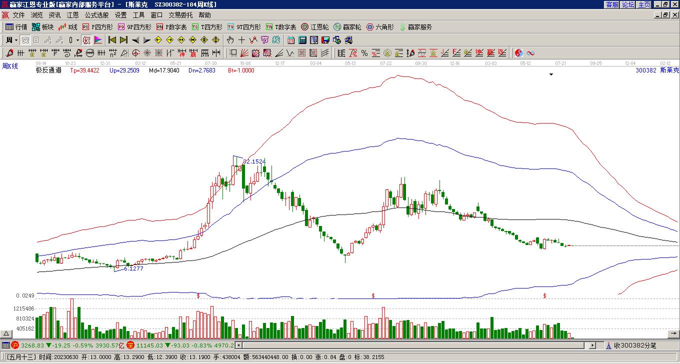 300382斯萊克根據贏家江恩極反通道趨勢工具展示,上方壓力位17.9194,下方支撐位15.5299。300382斯萊克處于贏家江恩多頭中期回調形態(tài),1月8日發(fā)出江恩筑頂信號后,經過4日,今日再次發(fā)