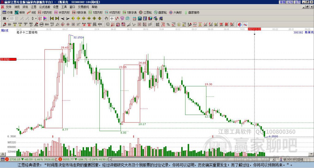 依據贏家江恩極反通道趨勢工具展示,本周股價處于弱勢通道內,近期自12月12日高點持續(xù)下跌至本周,跌幅達25.49%,依據贏家極反通道規(guī)則:站穩(wěn)一線看高一線,短期關注此線支撐,如支撐不破,短線有望展開反彈挑戰(zhàn)生命線。若跌破弱勢通道線3.6004,進入超弱通道,打開下跌空間。