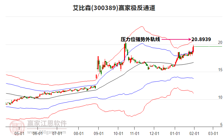 依據(jù)贏家江恩系統(tǒng)趨勢工具極反通道分析判斷艾比森300389運行在生命線以下弱勢區(qū)域,根據(jù)規(guī)則該股短線輕倉參與,股價跌至弱勢外軌線后波段再結(jié)合其它工具信號建倉。應(yīng)用口訣是:生命線上強勢走,生命線下難抬頭;紅黃兩條外軌線,壓力支撐顯勢頭。