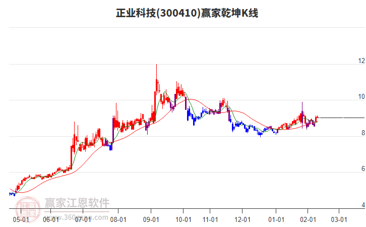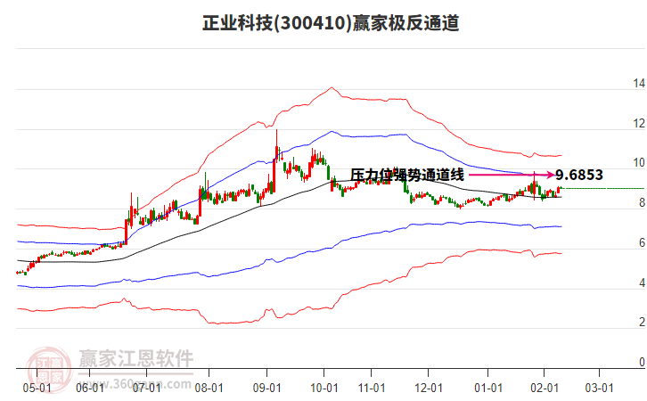 當天正業(yè)科技300410最高價9.88上穿了贏家極反通道工具藍色外軌線,受到藍色外軌線強力壓制,最終收盤停留在在藍色外軌線與生命線上方的強勢通道區(qū)域。正業(yè)科技300410近10個交易日漲幅11.65%