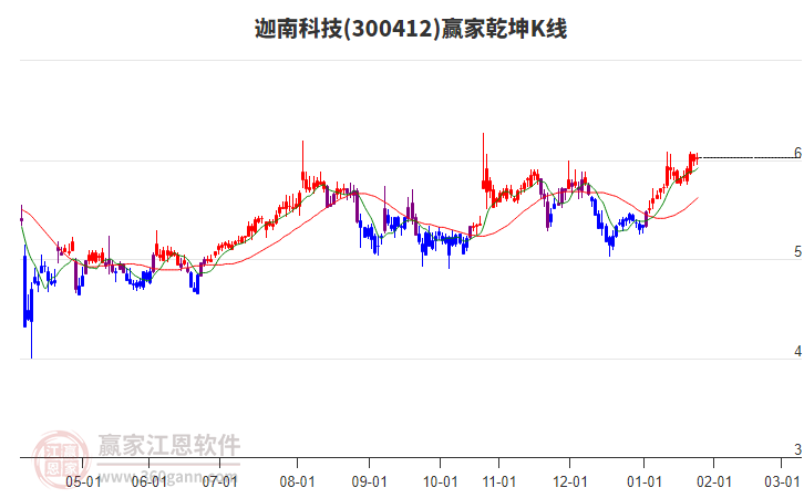 依據(jù)贏家江恩系統(tǒng)趨勢工具極反通道分析判斷迦南科技300412運行在生命線以上強勢區(qū)域,根據(jù)規(guī)則該股可短線、波段結(jié)合操作;結(jié)合物極必反的原理通過分鐘圖做盤中差價,應用口訣是:生命線上強勢走,生命線下難抬頭;紅黃兩條外軌線,壓力支撐顯勢頭。