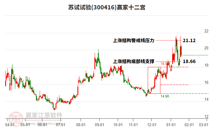 蘇試試驗(yàn)最高價(jià)挑戰(zhàn)上方紅色外軌線 小幅上漲6.96%