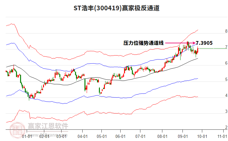 依據(jù)贏家江恩系統(tǒng)趨勢工具極反通道分析判斷ST浩豐300419運(yùn)行在生命線以下弱勢區(qū)域,根據(jù)規(guī)則該股短線輕倉參與,股價(jià)跌至弱勢外軌線后波段再結(jié)合其它工具信號建倉。應(yīng)用口訣是:生命線上強(qiáng)勢走,生命線下難抬頭;紅黃兩條外軌線,壓力支撐顯勢頭。