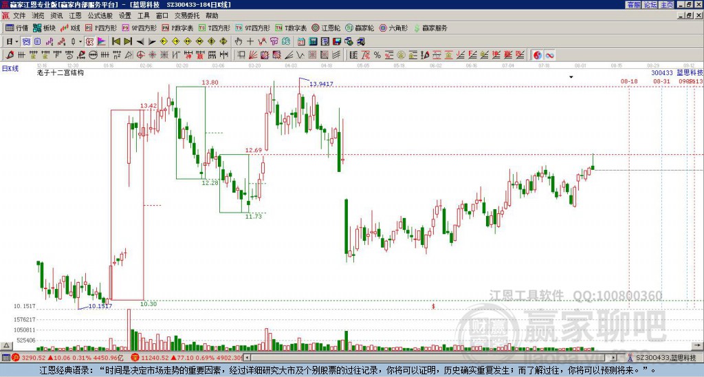 藍思科技(300433)處于贏家江恩多頭次主線形態(tài),12月11日發(fā)出江恩筑底信號后,經(jīng)過48日,今日形成短期筑頂信號,短期多頭趨勢已被破壞,中長期多頭趨勢依舊保持。藍思科技(300433)根據(jù)贏家江恩