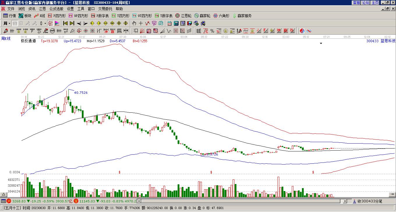 藍(lán)思科技根據(jù)贏家江恩極反通道趨勢工具展示,上方壓力位41.888,下方支撐位36.6559。藍(lán)思科技處于贏家江恩多頭次主線形態(tài),12月11日發(fā)出江恩筑底信號后,經(jīng)過40日,今日形成短期筑頂信號,短期多