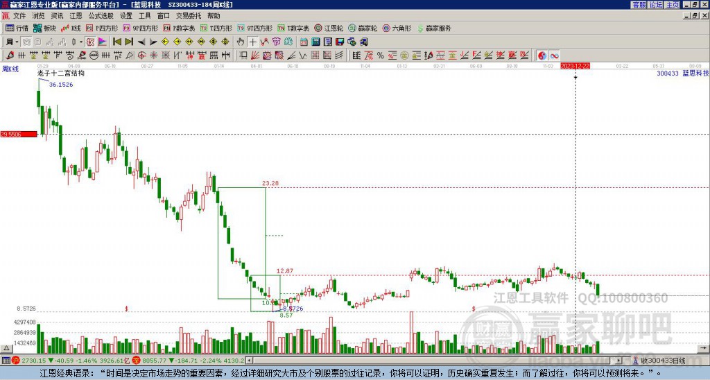 300433藍(lán)思科技從高點43.44,持續(xù)回調(diào)了18天,江恩周天時間循環(huán)線顯示近期時間窗2月23日