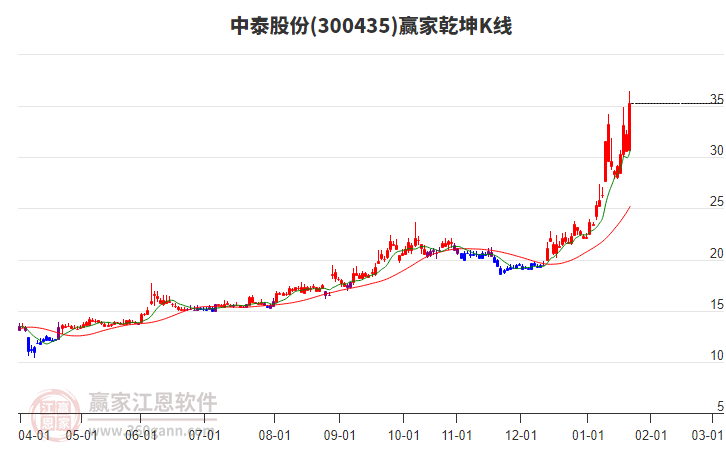 300435中泰股份低開收陽線,當(dāng)天漲幅9.37%