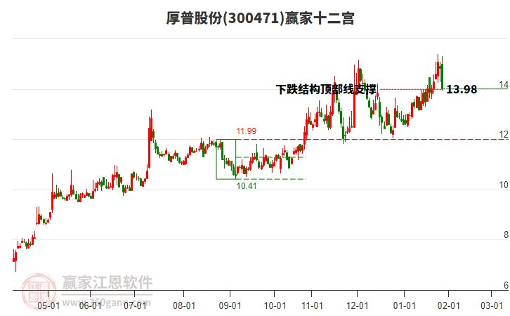 厚普股份處于贏家江恩多頭主線形態(tài),12月17日發(fā)出江恩筑頂信號后,經(jīng)過21日,今日再次發(fā)出江恩底分型并發(fā)出江恩筑底信號,中期雖然處于回調(diào)中,但長期多頭趨勢延續(xù)。厚普股份根據(jù)贏家江恩極反通道趨勢工具展示