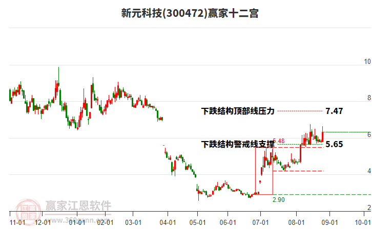 *ST新元根據(jù)贏家江恩極反通道趨勢工具展示,上方壓力位8.393,下方支撐位5.2995。*ST新元處于贏家江恩多頭主線形態(tài),今日重心下移,形成了頂分型,長期發(fā)出江恩筑底信號,屬長期多頭預(yù)警。*ST新