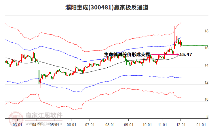 依據(jù)贏家江恩系統(tǒng)趨勢工具極反通道分析判斷濮陽惠成300481運行在生命線以下弱勢區(qū)域,根據(jù)規(guī)則該股短線輕倉參與,股價跌至弱勢外軌線后波段再結(jié)合其它工具信號建倉。應(yīng)用口訣是:生命線上強勢走,生命線下難抬頭;紅黃兩條外軌線,壓力支撐顯勢頭。