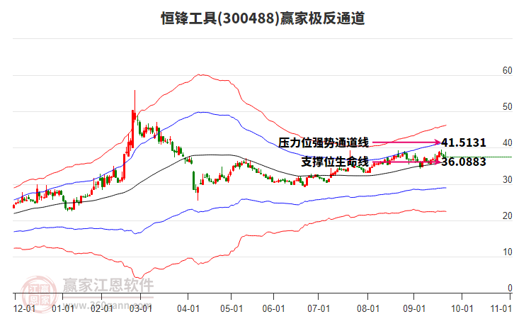 依據(jù)贏家江恩系統(tǒng)趨勢(shì)工具極反通道分析判斷恒鋒工具300488運(yùn)行在生命線以上強(qiáng)勢(shì)區(qū)域,根據(jù)規(guī)則該股可短線、波段結(jié)合操作;結(jié)合物極必反的原理通過(guò)分鐘圖做盤中差價(jià),應(yīng)用口訣是:生命線上強(qiáng)勢(shì)走,生命線下難抬頭;紅黃兩條外軌線,壓力支撐顯勢(shì)頭。