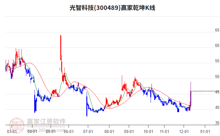 當(dāng)天300489光智科技最高價49.0挑戰(zhàn)了贏家極反通道工具藍色外軌線,受到藍色外軌線強力壓制,最終收盤停留在在藍色外軌線與生命線上方的強勢通道區(qū)域。300489光智科技近10個交易日漲幅12.4%。