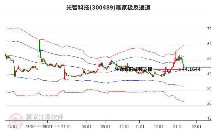 依據(jù)贏家江恩系統(tǒng)趨勢工具極反通道分析判斷光智科技300489運行在生命線以下弱勢區(qū)域,根據(jù)規(guī)則該股短線輕倉參與,股價跌至弱勢外軌線后波段再結(jié)合其它工具信號建倉。應(yīng)用口訣是:生命線上強勢走,生命線下難抬頭;紅黃兩條外軌線,壓力支撐顯勢頭。