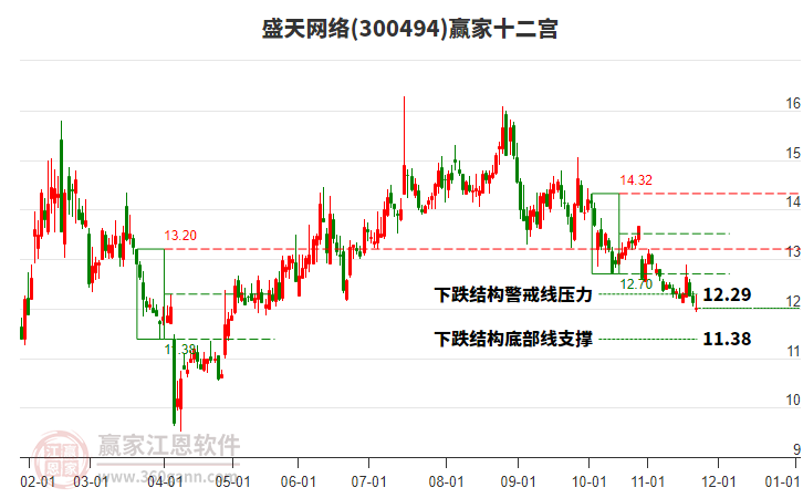 盛天網(wǎng)絡(luò)處于贏家江恩多頭中期回調(diào)形態(tài),從11月25日形成頂分型后持續(xù)下跌,重心下移,今日跌破前低形成短期初次筑頂信號(hào),短期多頭趨勢(shì)已被破壞,中長(zhǎng)線均在空頭下跌趨勢(shì)中。盛天網(wǎng)絡(luò)根據(jù)贏家江恩極反通道趨勢(shì)工