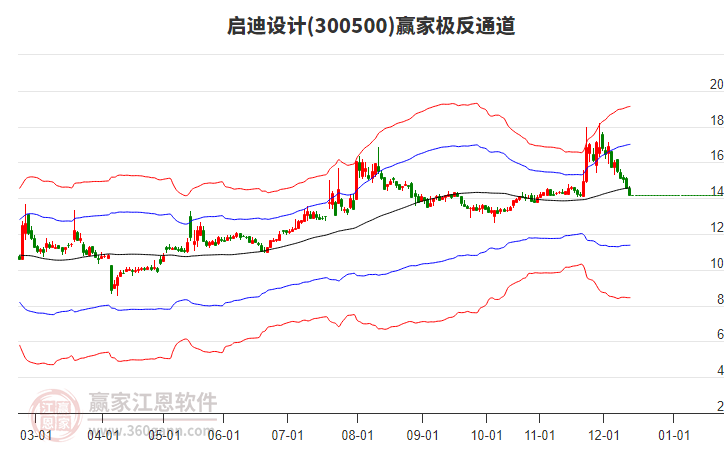今日啟迪設(shè)計(jì)300500最高價(jià)18.2挑戰(zhàn)了贏家極反通道工具上方紅色外軌線,受到上方紅色外軌線強(qiáng)力壓制,最終收盤停留在在上方紅色外軌線與藍(lán)色外軌線上方的超強(qiáng)通道區(qū)域。啟迪設(shè)計(jì)300500近10個(gè)交易日