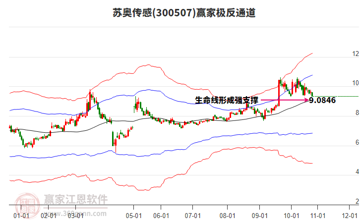 依據(jù)贏家江恩系統(tǒng)趨勢(shì)工具極反通道分析判斷蘇奧傳感300507運(yùn)行在生命線以上強(qiáng)勢(shì)區(qū)域,根據(jù)規(guī)則該股可短線、波段結(jié)合操作;結(jié)合物極必反的原理通過(guò)分鐘圖做盤中差價(jià),應(yīng)用口訣是:生命線上強(qiáng)勢(shì)走,生命線下難抬頭;紅黃兩條外軌線,壓力支撐顯勢(shì)頭。