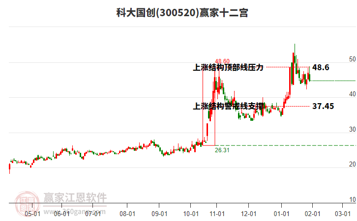 科大國創(chuàng)(300520)根據(jù)贏家江恩極反通道趨勢工具展示,上方壓力位50.6328,下方支撐位39.4682??拼髧鴦?chuàng)(300520)處于贏家江恩多頭次主線形態(tài),12月17日發(fā)出江恩筑底信號后,經(jīng)過4