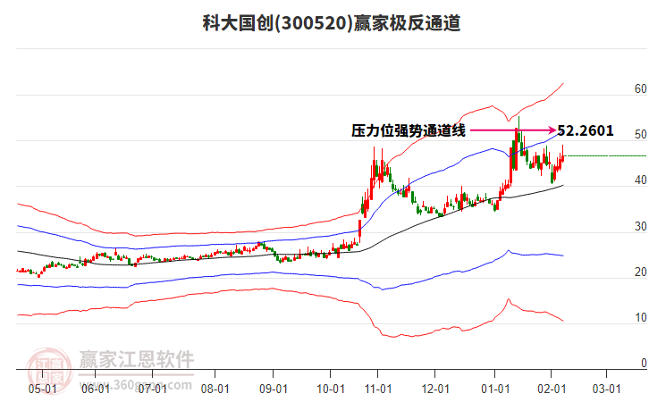 依據(jù)贏家江恩系統(tǒng)趨勢工具極反通道分析判斷科大國創(chuàng)300520運行在生命線以上強勢區(qū)域,根據(jù)規(guī)則該股可短線、波段結(jié)合操作;結(jié)合物極必反的原理通過分鐘圖做盤中差價,應用口訣是:生命線上強勢走,生命線下難抬頭;紅黃兩條外軌線,壓力支撐顯勢頭。