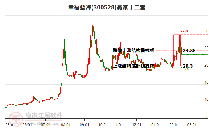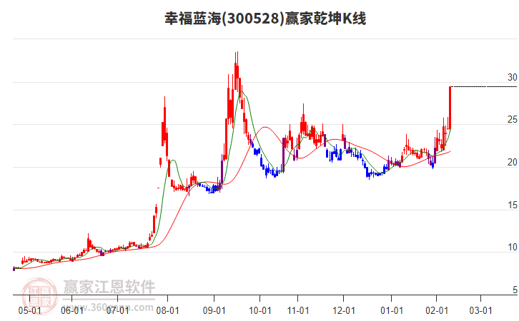 幸福藍(lán)海(300528)低開收陽線,目前處于上行趨勢