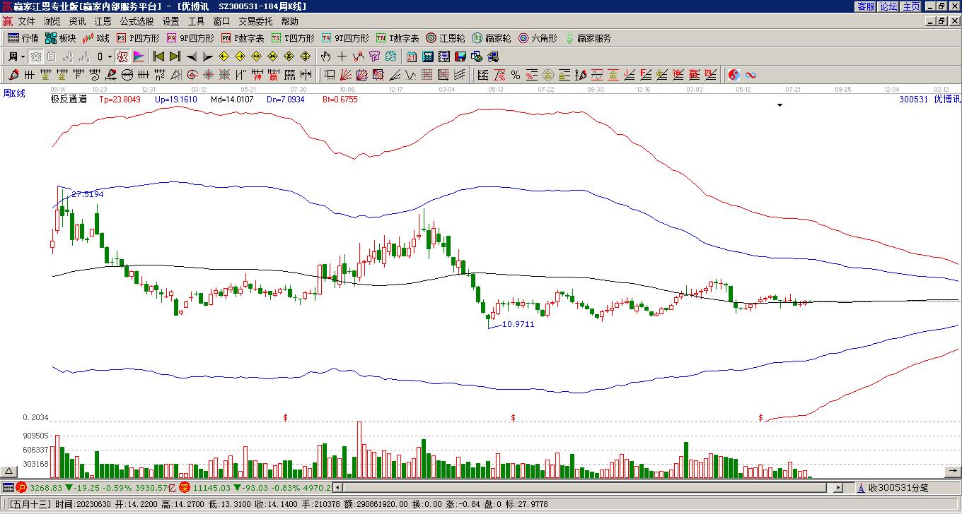 優(yōu)博訊根據(jù)贏家江恩極反通道趨勢工具展示,上方壓力位19.4259,下方支撐位17.7331。優(yōu)博訊處于贏家江恩多頭中期回調(diào)形態(tài),12月25日發(fā)出江恩筑底信號后,經(jīng)過14日,今日形成短期筑頂信號,短期多