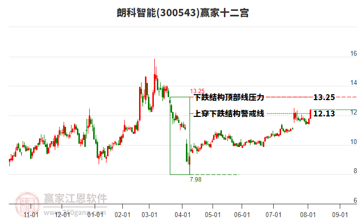 依據(jù)贏家江恩系統(tǒng)趨勢工具極反通道分析判斷朗科智能300543運行在生命線以上強勢區(qū)域,根據(jù)規(guī)則該股可短線、波段結(jié)合操作;結(jié)合物極必反的原理通過分鐘圖做盤中差價,應(yīng)用口訣是:生命線上強勢走,生命線下難抬頭;紅黃兩條外軌線,壓力支撐顯勢頭。