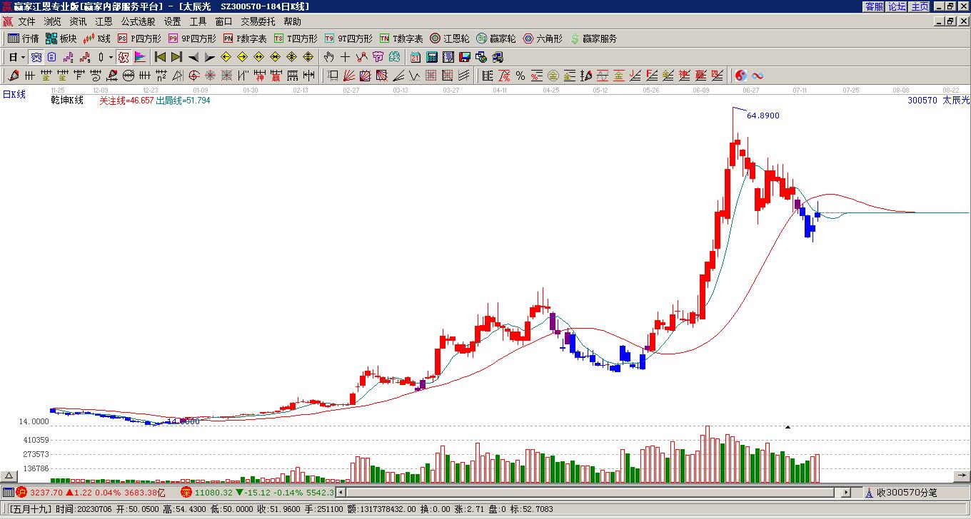 太辰光今日低開,在收盤時大幅上漲12.91%,形成反包。太辰光處于贏家江恩多頭主線形態(tài),短期發(fā)出初次江恩筑底信號,根據(jù)贏家江恩工具五星來看,今日星級評定為5星,與昨日相比增加2個星,其中極反通道、乾坤