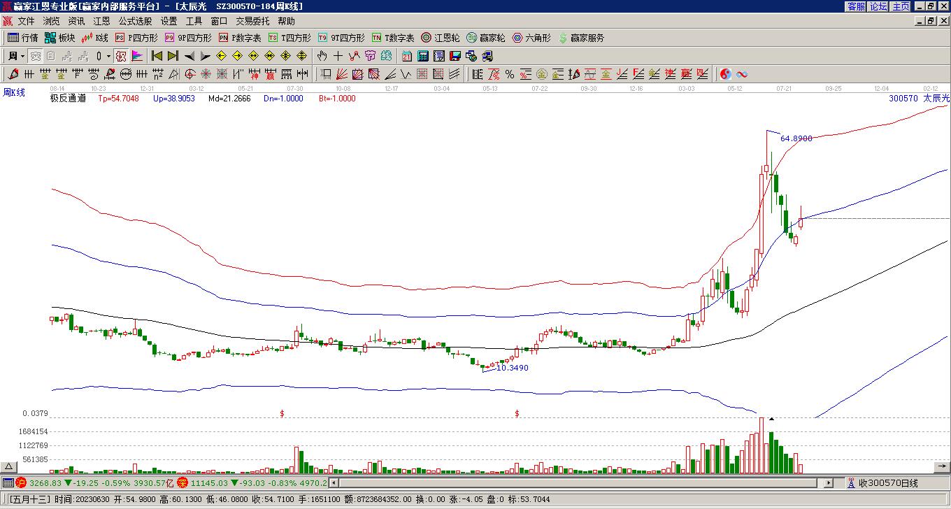 300570太辰光目前大幅上漲16.15%,所屬板塊CPO、數(shù)據(jù)中心、芯片短期底分型后持續(xù)上攻。300570太辰光截止目前突破極反通道強勢通道線,根據(jù)贏家江恩極反通道趨勢工具展示,上方壓力位179.0