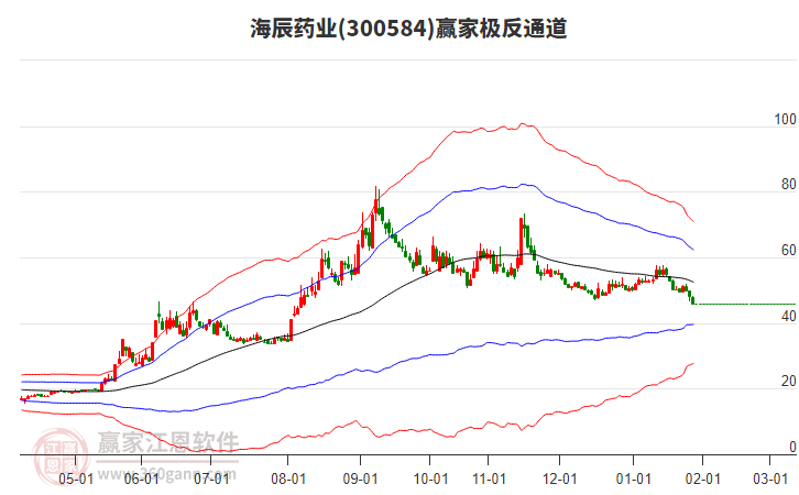 海辰藥業(yè)處于贏家江恩多頭中期回調(diào)形態(tài),從1月13日形成頂分型后持續(xù)下跌,重心下移,今日跌破前低形成短期初次筑頂信號(hào),短期多頭趨勢(shì)已被破壞,中長(zhǎng)線均在空頭下跌趨勢(shì)中。海辰藥業(yè)根據(jù)贏家江恩極反通道趨勢(shì)工具