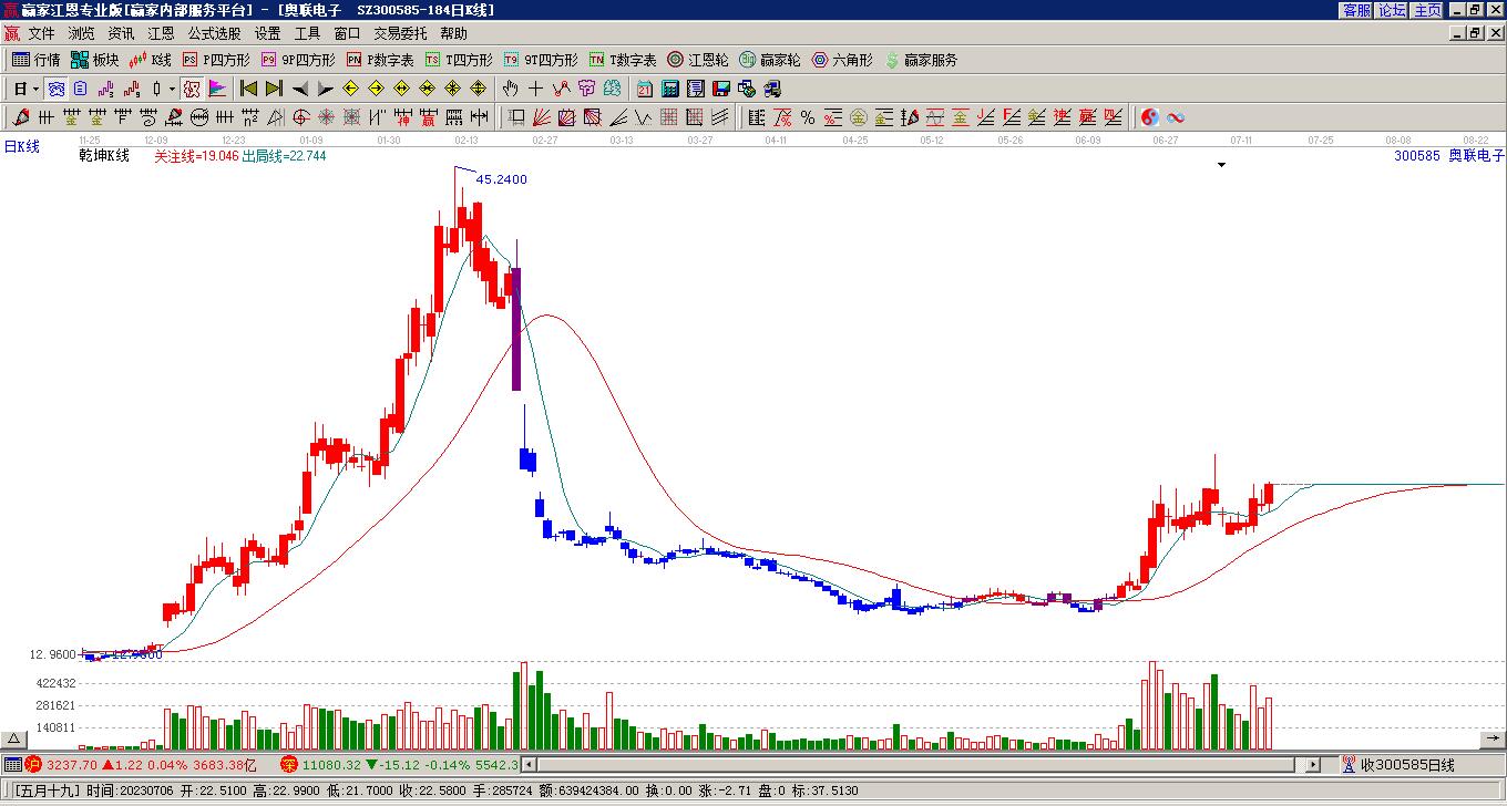 奧聯(lián)電子(300585)形成陽包陰組合形態(tài),跌破黃金價(jià)格回調(diào)支撐位工具關(guān)鍵點(diǎn)位22.12元