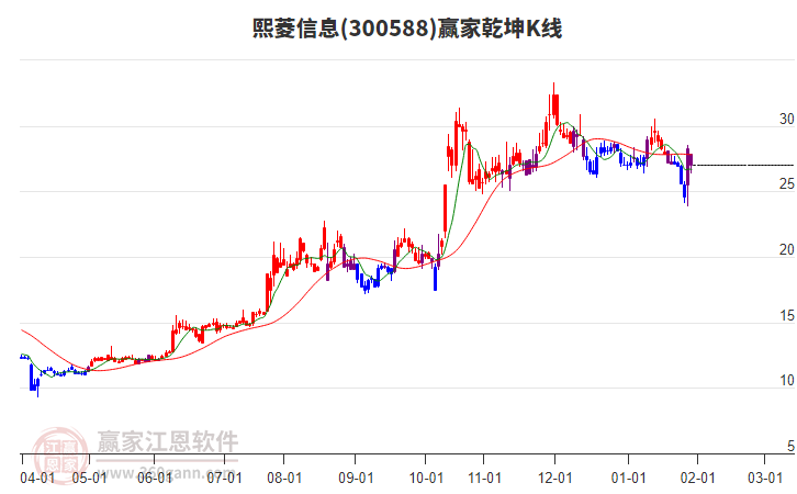 熙菱信息(300588)在高點(diǎn)30.6后,回調(diào)了4.71元 時空大數(shù)據(jù)概念近12天下跌7.87%