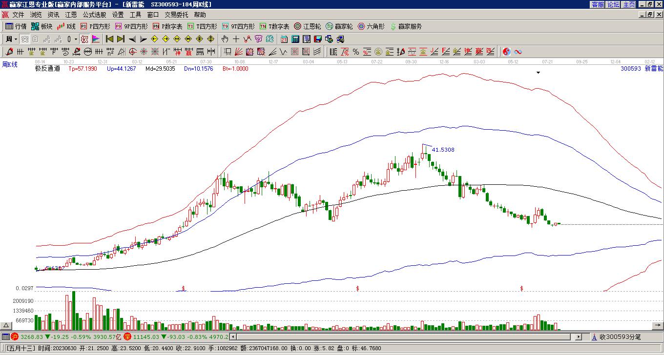 今天新雷能最高價(jià)33.74挑戰(zhàn)了贏家極反通道工具藍(lán)色外軌線,受到藍(lán)色外軌線強(qiáng)力壓制,最終收盤停留在在藍(lán)色外軌線與生命線上方的強(qiáng)勢通道區(qū)域。新雷能近10個交易日漲幅29.95%。