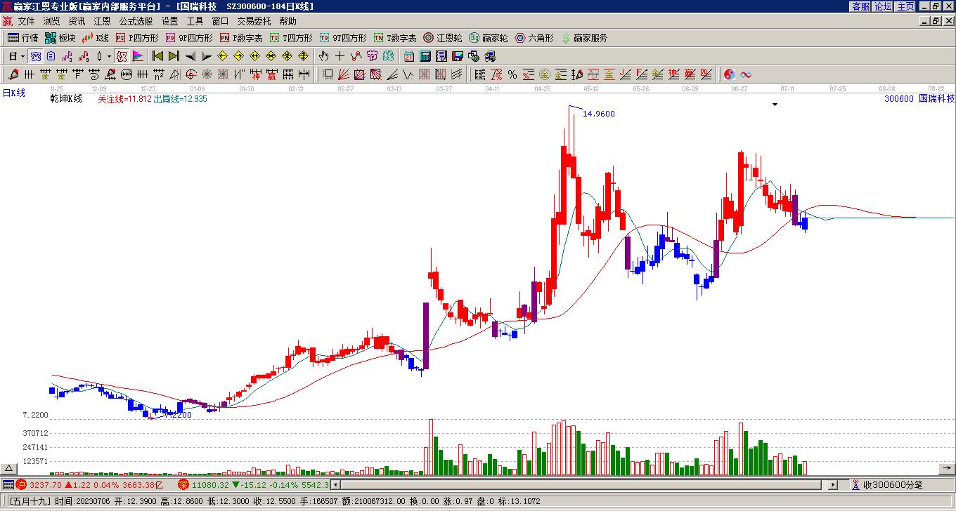 國瑞科技(300600)目前漲幅9.1%,走出獨立行情。國瑞科技目前K線形態(tài)上出現(xiàn)了典型的“兩陽夾一陰”的形態(tài),該形態(tài)屬于莊家的震倉行為,為多方進(jìn)攻信號。