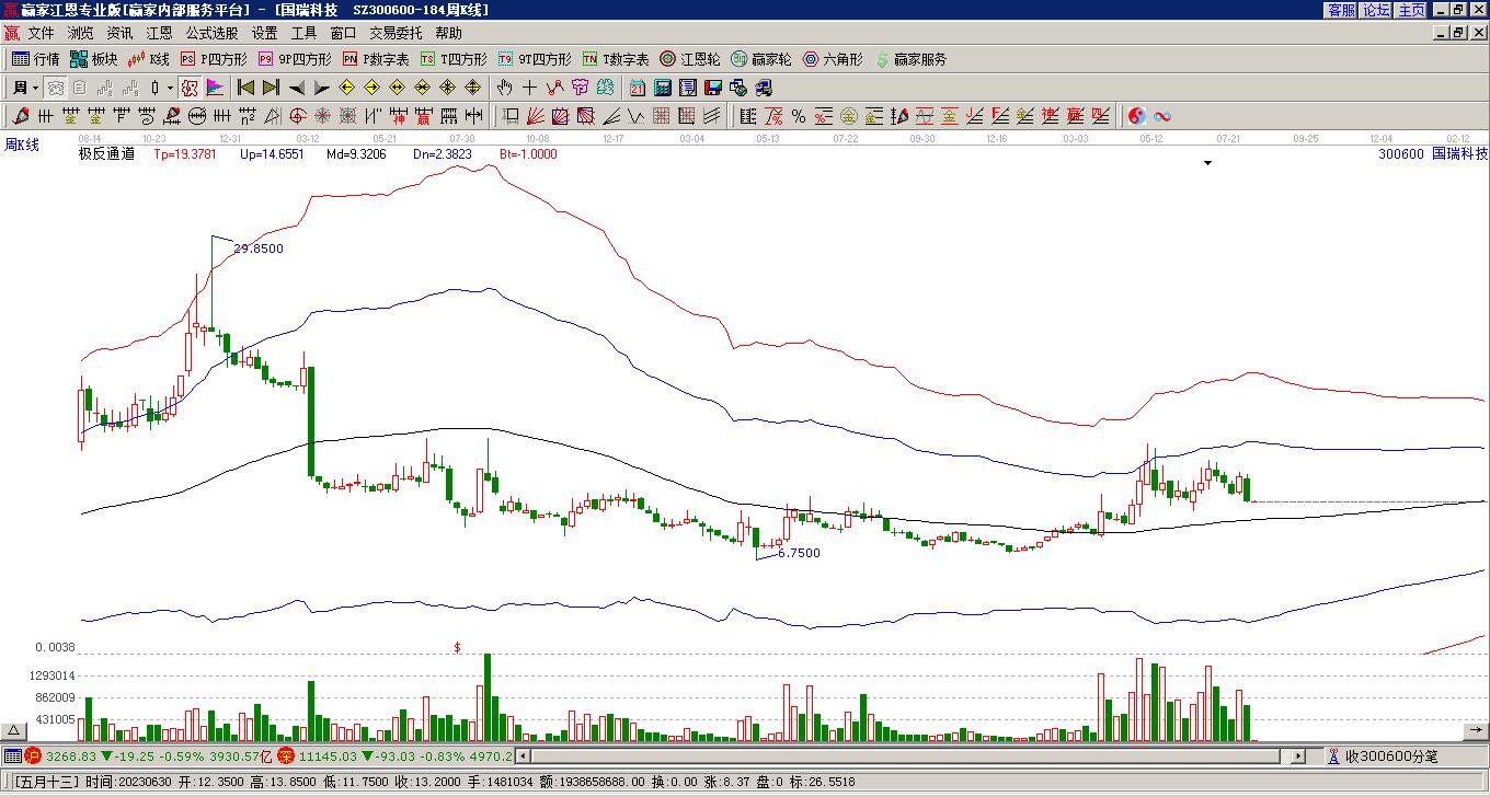 依據(jù)贏家江恩極反通道趨勢工具展示,本周股價處于生命線上強(qiáng)勢通道,本周收盤價14.55,自近期通道內(nèi)低點13.68上漲至本周,到達(dá)生命線13.0496點上方,短期關(guān)注此線支撐,如支撐不破,保持在強(qiáng)勢通道內(nèi),波段繼續(xù)看多,有望挑戰(zhàn)藍(lán)色上軌線。若跌破生命線13.0496,進(jìn)入弱勢通道,調(diào)整周期繼續(xù)延長。